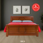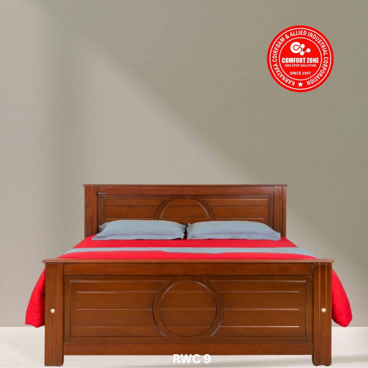A premium wooden cot featuring a stylish circular panel design on the headboard and footboard. Strong, elegant, and crafted to bring a modern yet warm touch to your bedroom.