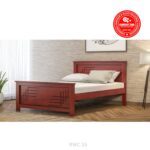 A sleek wooden cot featuring a modern intersecting-line design on the headboard and footboard. Durable, elegant, and crafted to add a stylish contemporary touch to your bedroom.