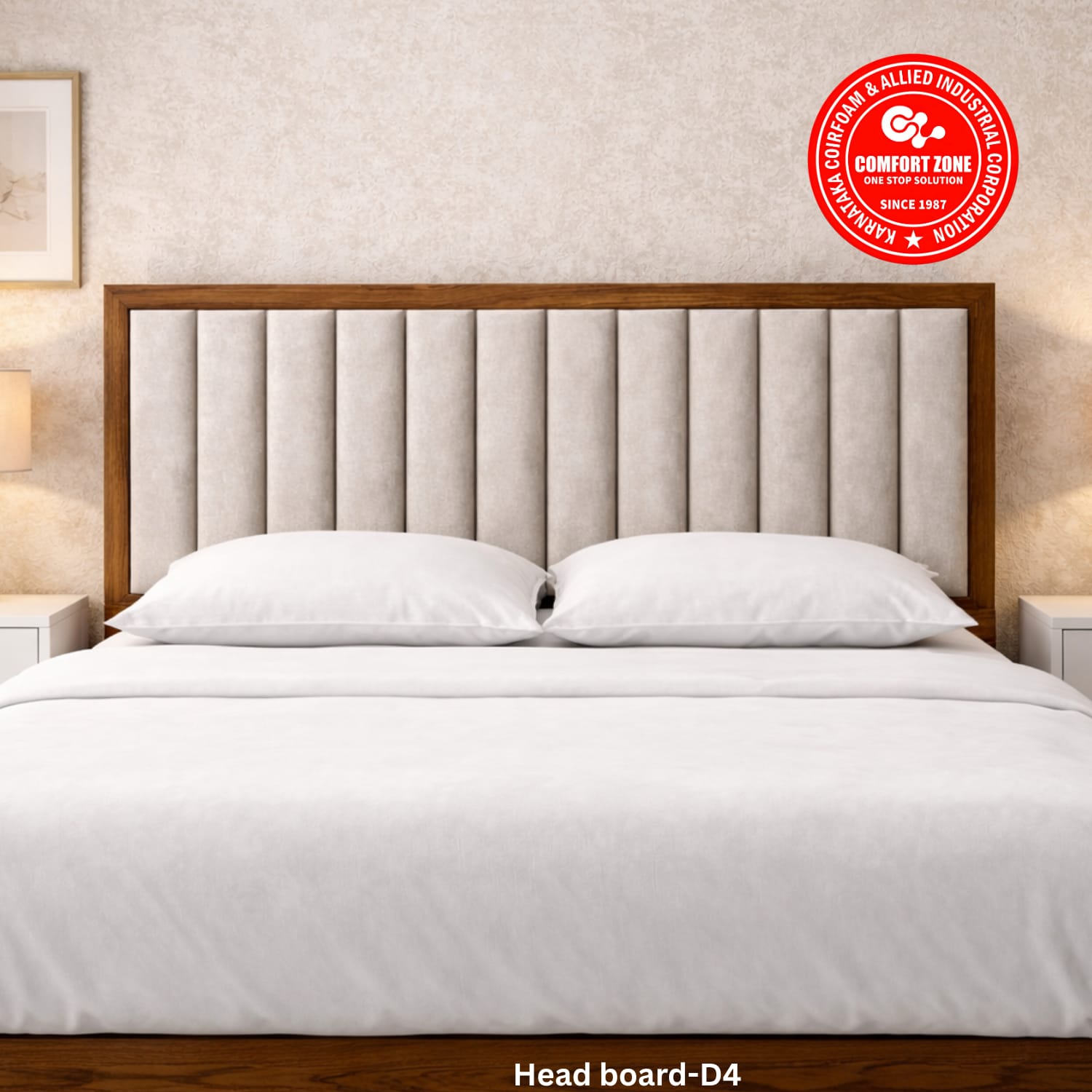 Sleek upholstered headboard with vertical channel detailing for a clean, modern aesthetic.