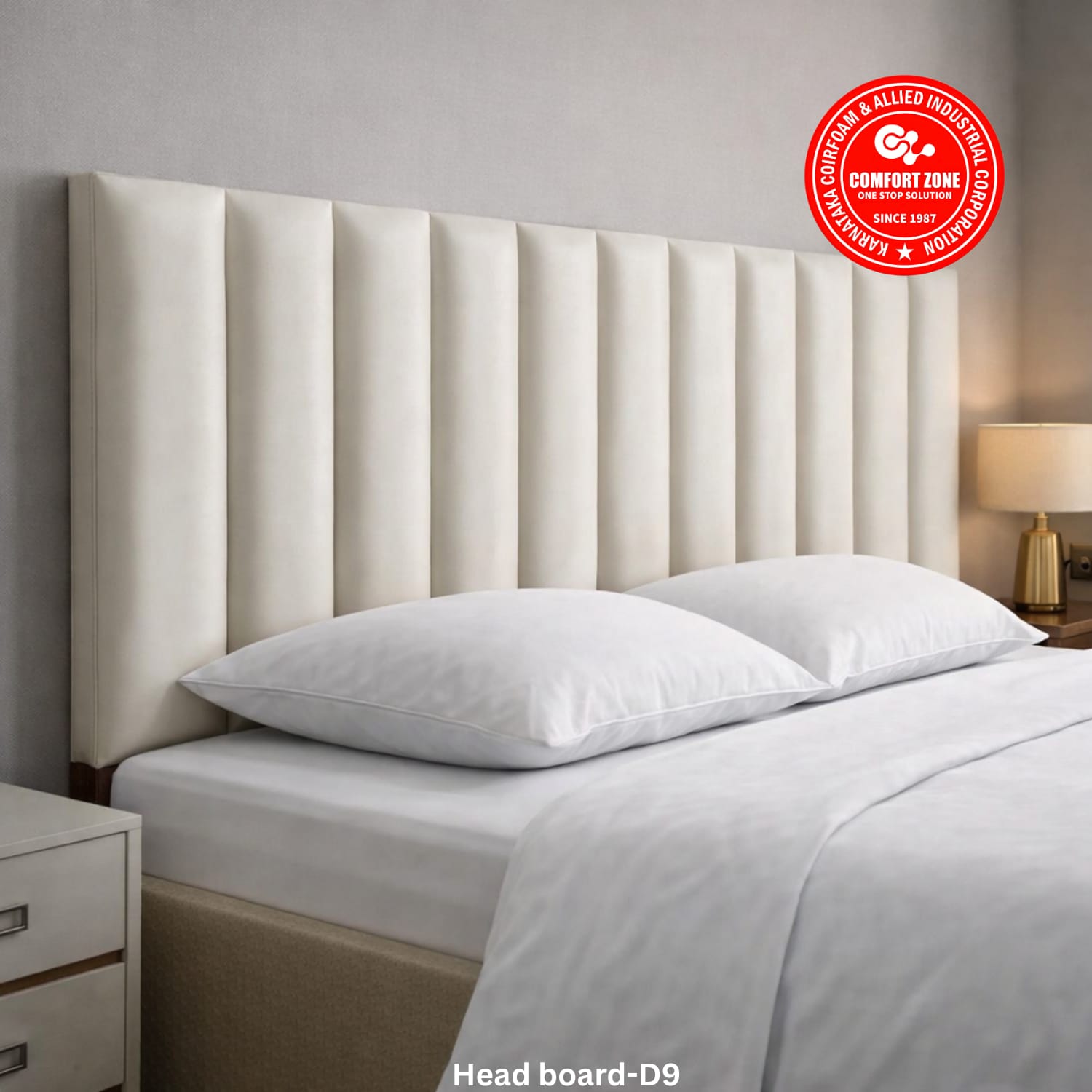 Minimalist upholstered headboard with elegant vertical panel detailing for a timeless look.