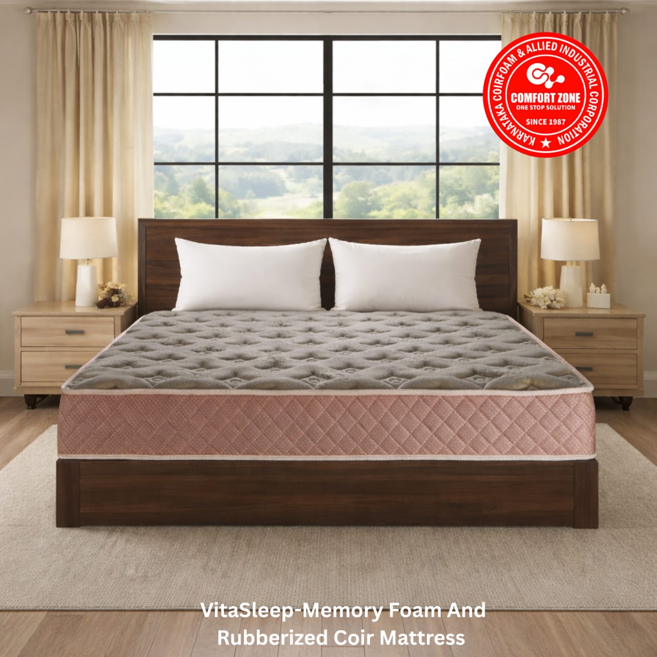 A New Age Technology Mattress with Cool Gel infused Memory Foam and High Density Rubberized Coir, with Bio-Cotton Fabric. Incorporating state-of-the-art Cool Gel-infused Memory Foam, this mattress effectively dissipates heat throughout the night, ensuring a cooler, more comfortable sleep experience.